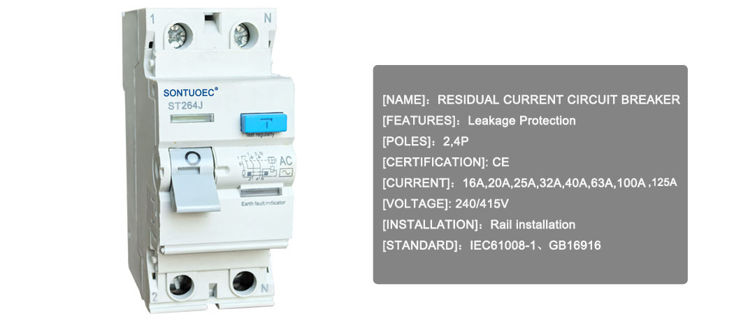SONTUOEC হল একটি চাইনিজ সরবরাহকারী/নির্মাতা যারা বিভিন্ন ছোট বৈদ্যুতিক যন্ত্রপাতি উৎপাদনে বিশেষজ্ঞ যারা ST264J ব্যবহার করা হয় AC50 / 60HZ দুই খুঁটিতে 230V, চারটি খুঁটি 400V, রেট করা কারেন্ট 63A পর্যন্ত, এটি স্বয়ংক্রিয়ভাবে এবং অবিলম্বে বিদ্যুৎ সরবরাহ বন্ধ করে দিতে পারে একবার কেউ যদি লেইক কারেন্টের ওপরে বিদ্যুতের শক এ আক্রান্ত হয়। এটি কার্যকরভাবে ব্যক্তিগত নিরাপত্তা রক্ষা করতে পারে এবং সরঞ্জামের ক্ষতি এড়াতে পারে। অবশিষ্ট বর্তমান চালিত সার্কিট ব্রেকার ওভারলোড এবং শর্ট-সার্কিট সুরক্ষা এবং সাধারণ অবস্থায় লাইনের ঘন ঘন পরিবর্তন হিসাবেও কাজ করতে পারে। পণ্যটি শিল্প, ব্যবসা, ভবন, বাসস্থান ইত্যাদির জন্য উপযুক্ত। এটি IEC61008-1 মানগুলির সাথে সামঞ্জস্যপূর্ণ।