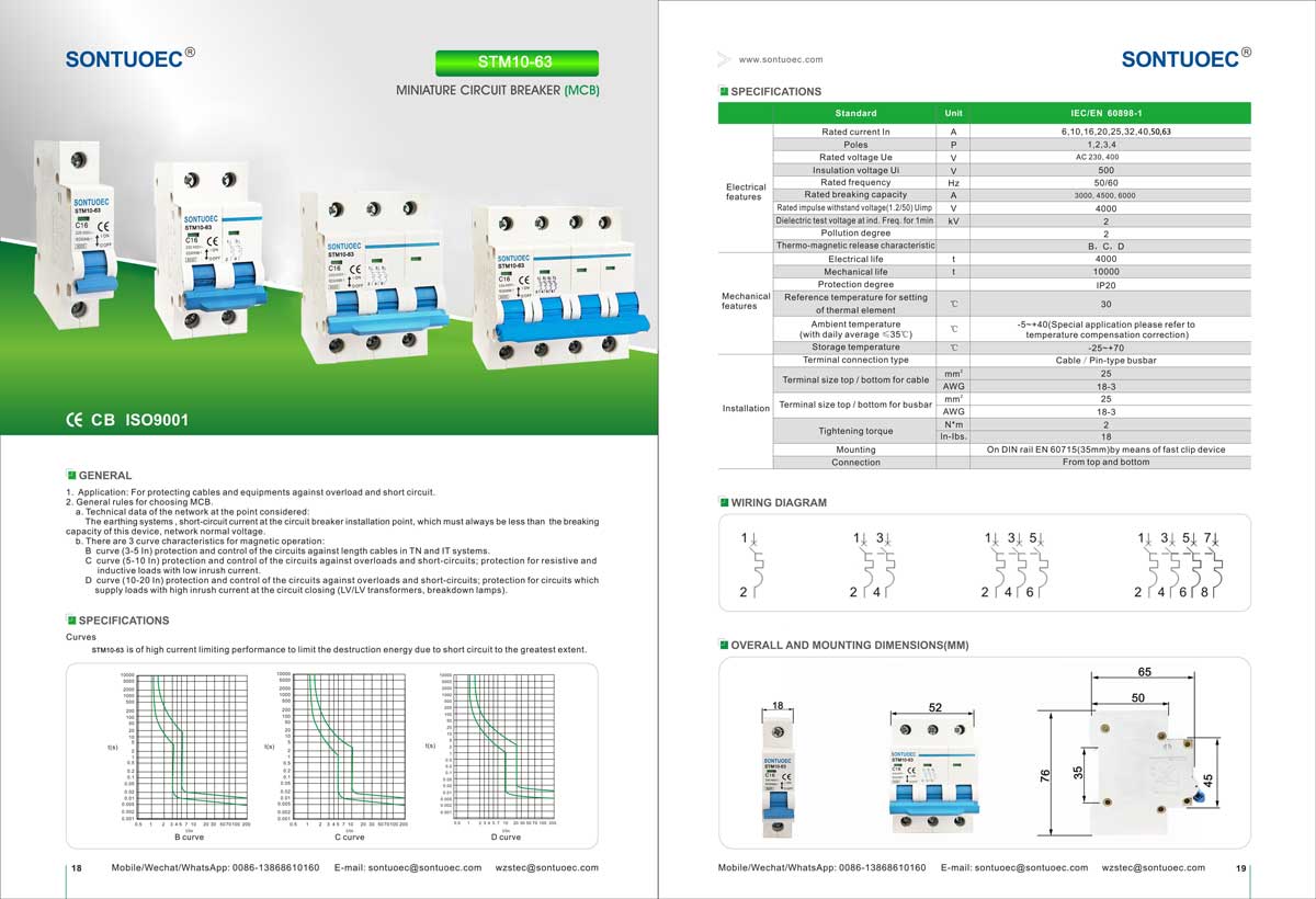 SONTUOEC হল একটি চাইনিজ সরবরাহকারী/নির্মাতাদের মধ্যে যারা বিভিন্ন ছোট বৈদ্যুতিক যন্ত্রপাতি উৎপাদনে বিশেষজ্ঞ STM10-63 সিরিজের হাই ব্রেকিং মিনিয়েচার সার্কিট ব্রেকারে রয়েছে উন্নত কাঠামোর বৈশিষ্ট্য, কর্মক্ষমতা নির্ভরযোগ্য, ব্রেকিং ক্ষমতা বেশি, চেহারা মার্জিত এবং এর শেল এবং অংশগুলি প্রভাব প্রতিরোধী, শক্তিশালী ফ্লেম সহ উপাদান দিয়ে তৈরি। এটি 50 বা 60 ফ্রিকোয়েন্সি, Ue 400V এবং নীচে, Ui 63A এবং নীচের পাওয়ার সিস্টেমের জন্য উপযুক্ত৷ এটি IEC60898.1 এবং GB10963.1 মানগুলির সাথে সামঞ্জস্যপূর্ণ৷