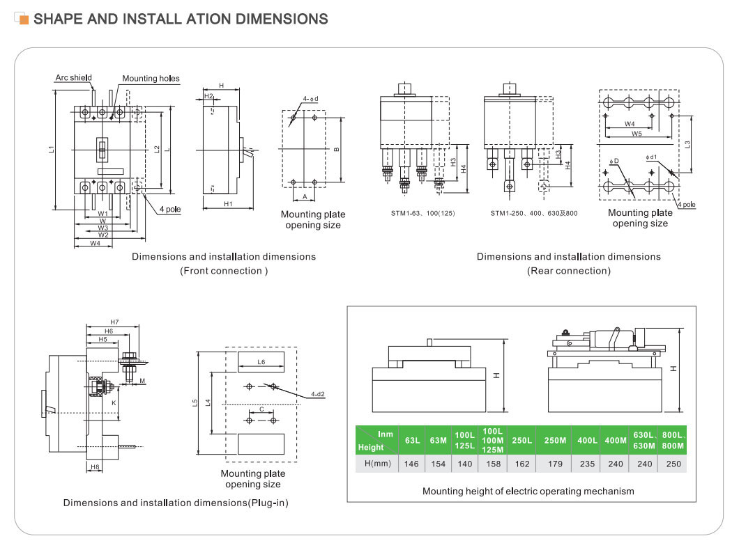 | মডেল | STM1-125 | STM1-250 | STM1-400 | STM1-630 | STM1-800 | STM1-1250 | |||||||||||||
