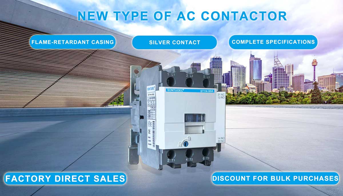 SONTUOEC হল একটি চাইনিজ সরবরাহকারী/নির্মাতাদের মধ্যে যারা বিভিন্ন ছোট বৈদ্যুতিক যন্ত্রপাতি উৎপাদনে বিশেষীকরণ করে ST1N সিরিজ এসি কন্টাক্টর সার্কিটে 660V AC 50Hz বা 60Hz পর্যন্ত রেটেড ভোল্টেজ, 95A পর্যন্ত রেট করা কারেন্ট ব্যবহার করার জন্য উপযুক্ত, moactor তৈরি এবং ভাঙতে এবং শুরু করার জন্য। অক্জিলিয়ারী কন্টাক্ট ব্লক, টাইমার বিলম্ব এবং মেশিন-ইন্টারলকিং ডিভাইস ইত্যাদির সাথে মিলিত হয়ে, এটি বিলম্ব কন্টাক্টর, মেকানিক্যাল ইন্টারলকিং কন্টাক্টর, স্টার-ডেল্টা স্টার্টার হয়ে যায়। তাপীয় রিলে দিয়ে, এটি ইলেক্ট্রোম্যাগনেটিক স্টার্টারের সাথে মিলিত হয়। IEC 60947-1 অনুযায়ী কন্টাক্টর তৈরি করা হয়।