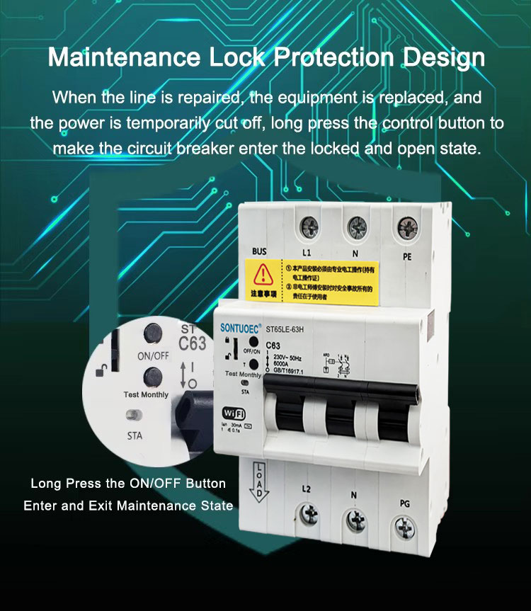এই ওয়াইফাই 4 জি টিউয়া এসটি 65 এল এল -63 এইচ সিরিজ মাল্টি ফাংশনাল আরসিবিও ইন্টেলিজেন্ট সার্কিট ব্রেকার 50Hz/60Hz, 230/400V 0 ~ 125a সার্কিটের জন্য উপযুক্ত যা ওভারলোড সুরক্ষা, শর্ট-সার্কিট সুরক্ষা এবং ফাঁস সুরক্ষার মতো ফাংশন রয়েছে। এদিকে, এই বুদ্ধিমান রিসক্লোসিং সার্কিট ব্রেকারের স্মার্ট সেল ফোনের মাধ্যমে বিশ্বব্যাপী রিমোট কন্ট্রোল স্যুইচড/ওএফ/এ স্যুইচড হিসাবে ফাংশন রয়েছে।